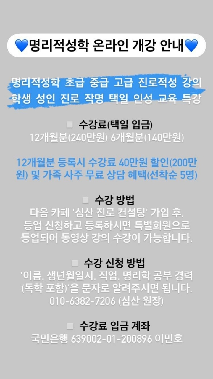 사주 상담료와 명리학 수강료 할인 이벤트를 실시합니다